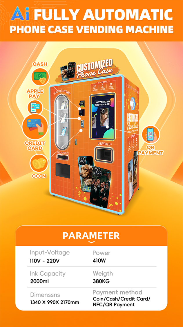Our phone case vending machine is an innovative retail solution designed to deliver instant customization and high-profit potential. Equipped with advanced UV printing technology, this machine allows customers to create and print personalized phone cases within minutes.