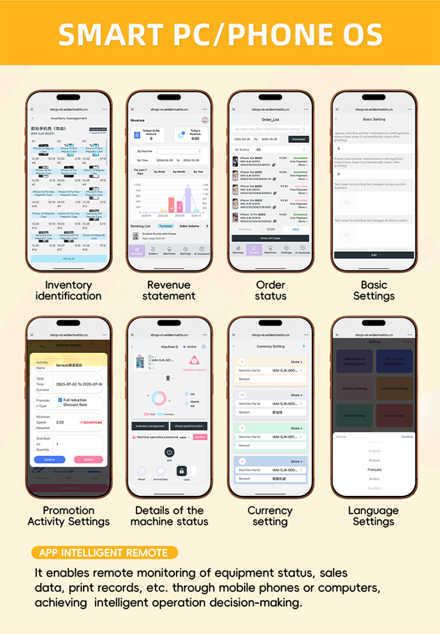 With support for multiple phone models and customizable designs, users can choose patterns, upload photos, or create unique cases directly from the touchscreen interface.